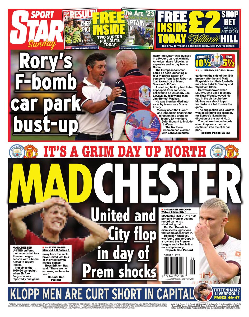 هردو تیم شهر منچستر در یک روز شکست خوردند؛ منچستریونایتد به کریستالپالاس باخت و منچسترسیتی مقابل ولورهمپتون مغلوب شد! البته با باخت لیورپول مقابل اسپرز، سیتی صدرنشین ماند.