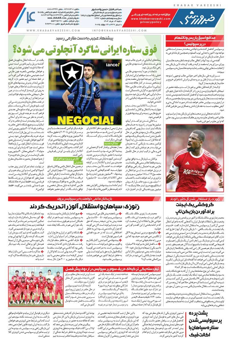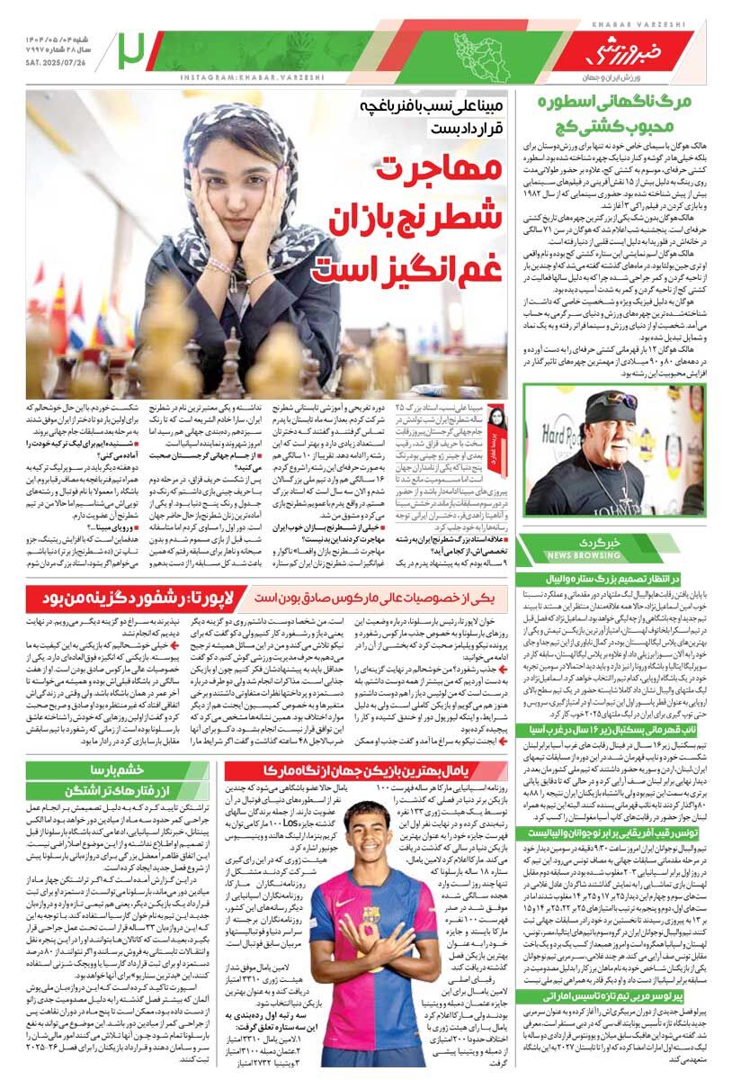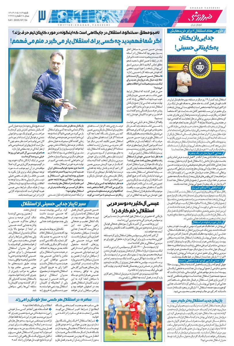 تازه‌ترین شماره روزنامه خبرورزشی، شنبه ۴ مرداد ۱۴۰۴ منتشر شد.